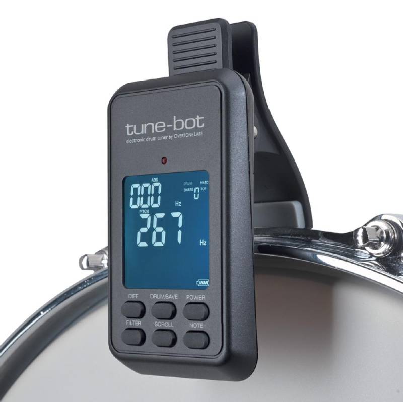 batteries. Le révolutionnaire Tune-bot apporte l'accordage du fût au 21e siècle en vous laissant réaliser un accordage musicalement, pas mécaniquement. Le Tune-bot est capable de mesurer avec précision la vraie hauteur tonale (pitch) pour chaque tirant ainsi que la hauteur tonale (appelée aussi tonie) globale du fût. Vous serez en mesure de régler plus rapidement et plus facilement et avec plus de précision-vos fûts retentiront mieux que jamais