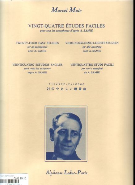 Vingt-quatre études faciles pour tous les saxophones d'après A. Samie par Marcel Mule.