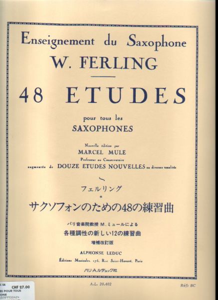 Quarante-huit études pour tous les saxophone. Nouvelle édition par Marcel Mule augmentée de douze études nouvelles en diverses tonalités.