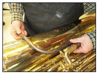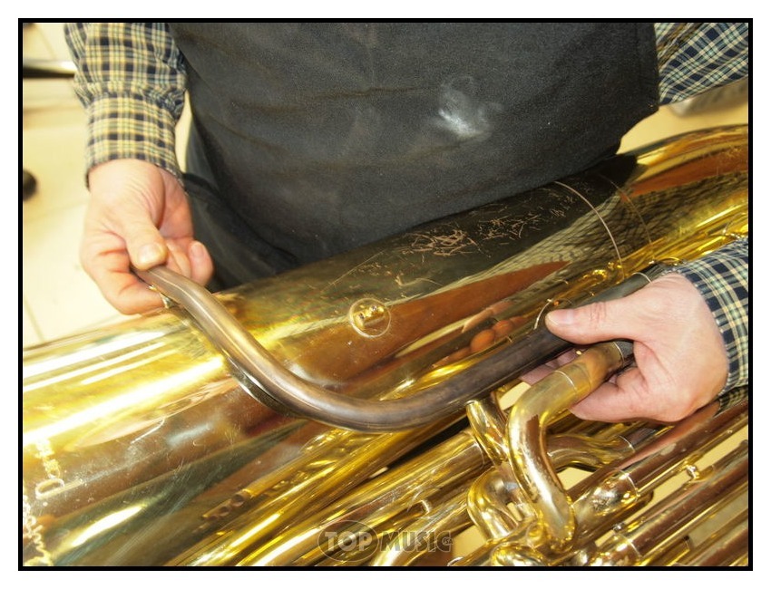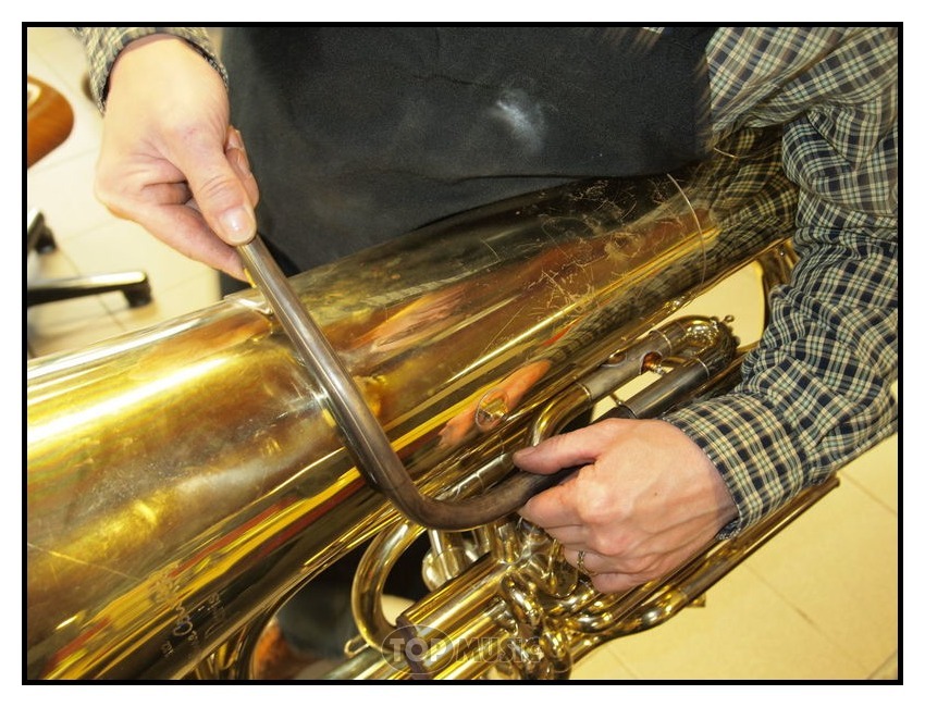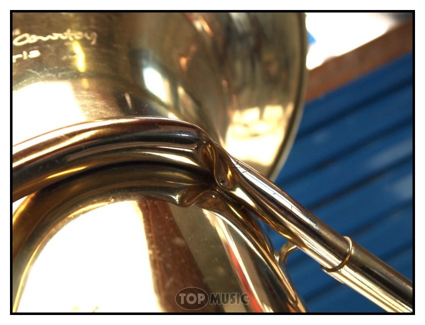 Un de nos client a eu un accident sur la branche d’embouchure de sa basse Courtois en tentant de sortir une embouchure coincée (d’où l’importance de toujours utiliser un extracteur d’embouchure).