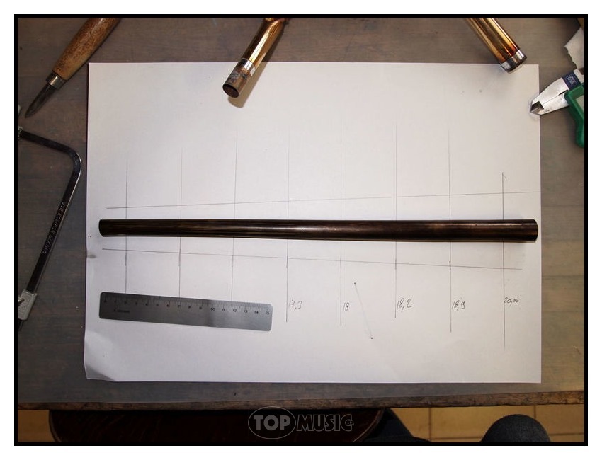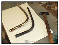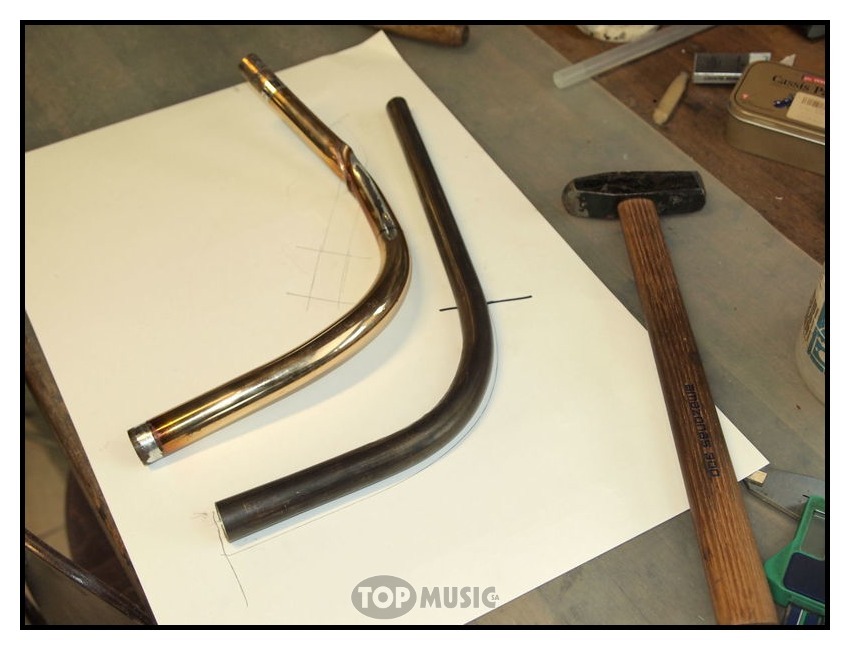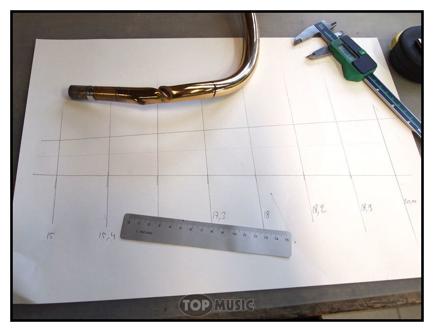 Première étape, démontage de l’ancienne branche et prise des côtes. Il faut savoir que les branches d’embouchures sont coniques, leur diamètre va en s’agrandissant depuis l’embouchure.