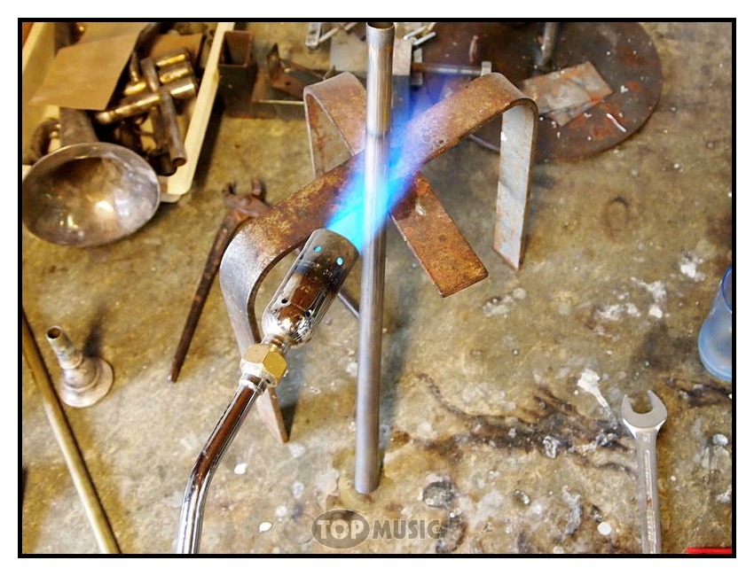 Un tube a été façonné pour respecter cette conicité. La chauffe permet de ramollir le laiton pour ne pas qu’il se fende lors des différentes étapes