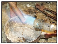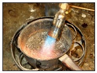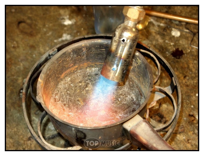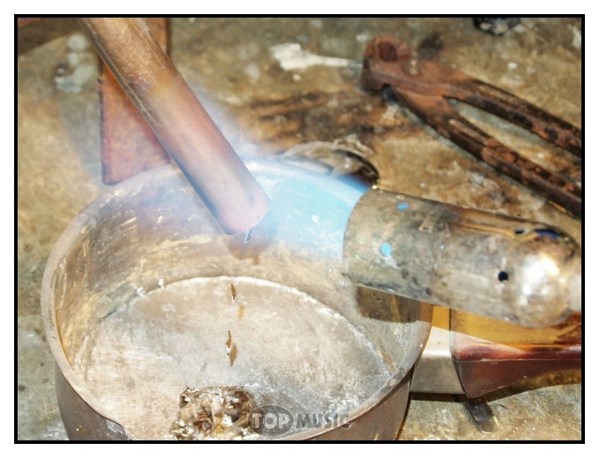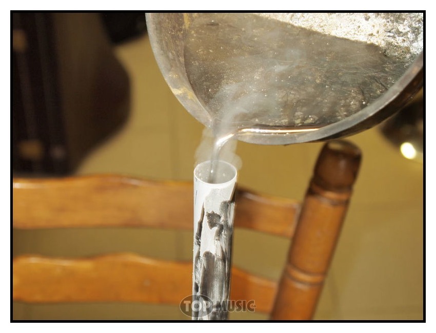 Du plomb est ensuite fondu et inséré dans le tube, Cela permettra de garder la section du tube intacte lors de la mise en forme