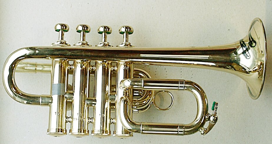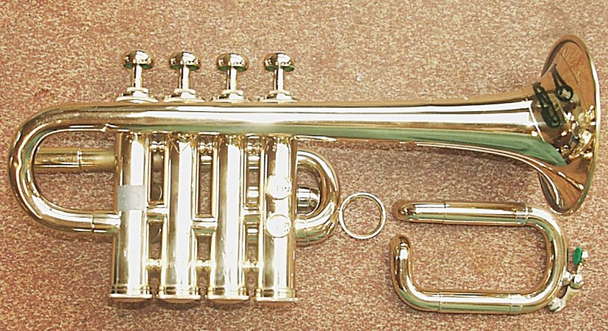 Cette trompette piccolo Selmer souffre d'un petit problème : le tube à la sortie du 4è piston a été scié !