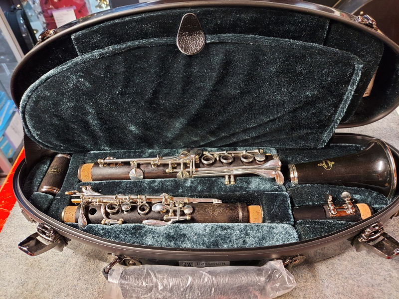 Instrument révisé, tamponnage neuf en cuir, étui neuf, bec, écouvillon.
