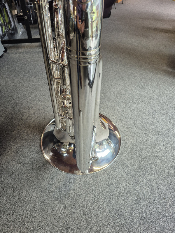 Instrument révisé, en bon état. Bosses sur la culasse sans influence sur le jeux. Très bon aspect de l'argenture. Avec étui Yamaha, embouchure, lyre